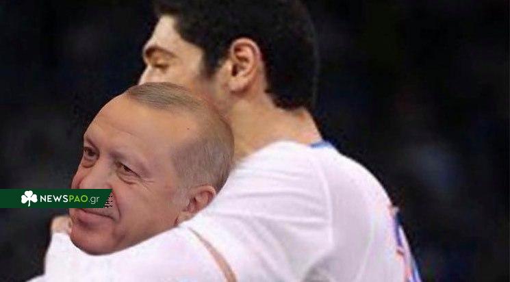 Με τη χρήση μοντάζ ο Καντέρ, που έχει ξεκαθαρίσει τις προθέσεις του για να αγωνιστεί στον Παναθηναϊκό στο μέλλον, έπιασε κεφαλοκλείδωμα τον Τούρκο Πρωθυπουργό.