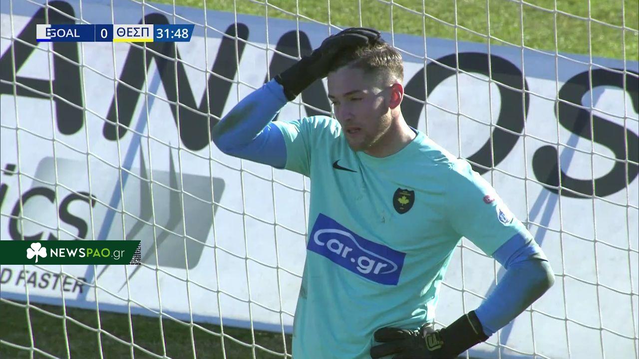 Ο τερματοφύλακας του Θεσπρωτού έδειχνε ότι ήλεγχε τη φάση αλλά έδιωξε τη μπάλα πάνω στον συμπαίκτη του με αποτέλεσμα να την πάρει ο Φοφανά και να σκοράρει σε άδεια εστία για το 1-0.