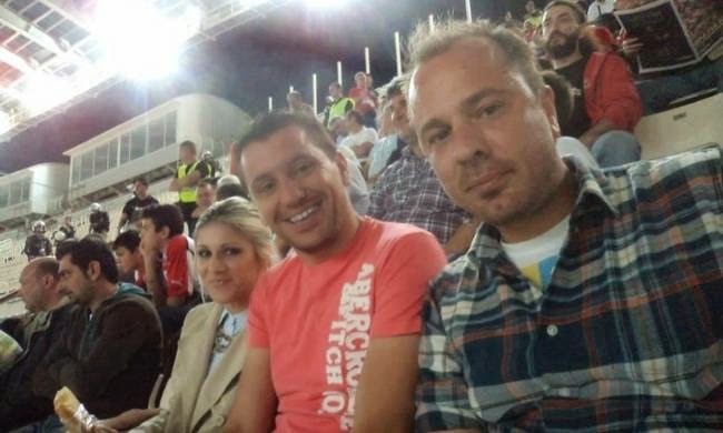 Στην φωτογραφία που βλέπετε καμαρώνει και γελάει στο ΟΑΚΑ σε ματς της ομάδας της καρδιάς του. Διακρίνεται εύκολα αυτό, καθώς γύρω του έχει μόνο σιχαμένες φανέλες.