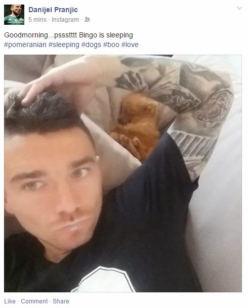 Με μία selfie με το ένα από τα σκυλιά του θέλησε να καλημερίσει τους φίλους του ο Ντάνιελ Πράνιτς.