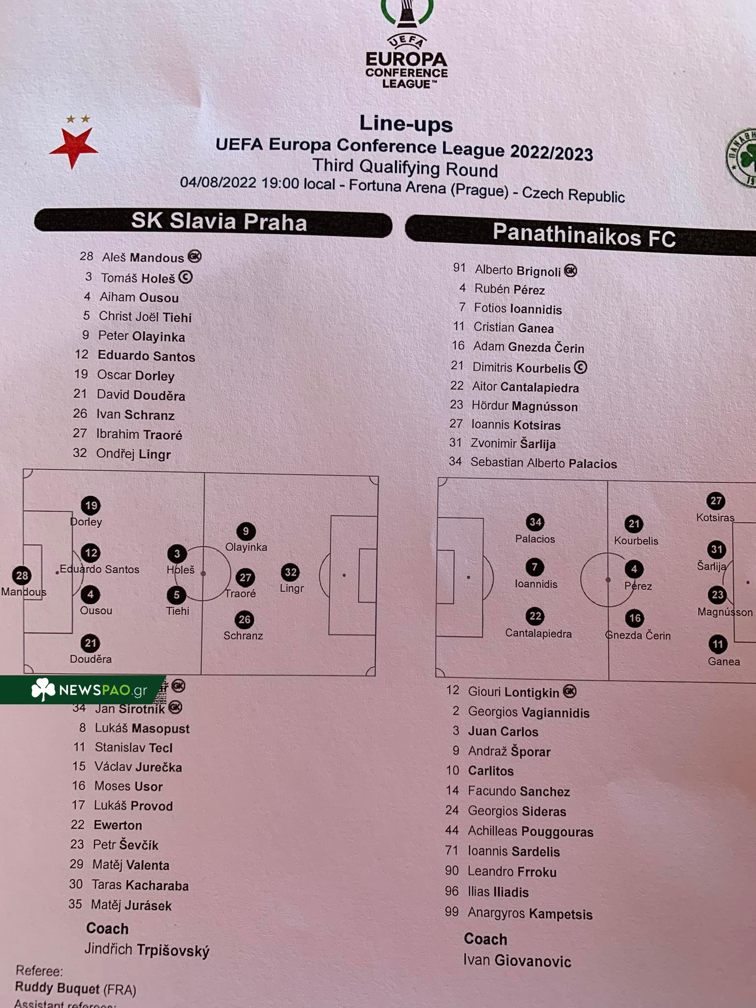 Γνωστή έχει γίνει και η ενδεκάδα της Σλάβια Πράγας στον αγώνα με τον Παναθηναϊκό.