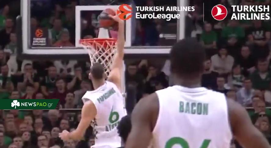 Ένα τρομερό κάρφωμα πέτυχε ο Γιώργος Παπαγιάννης μετά από ασίστ του Καλαϊτζάκη στη πρώτη περίοδο του αγώνα με την Ζαλγκίρις.
