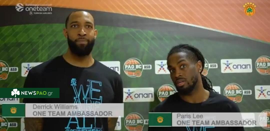 Ο έτερος πρεσβευτής του προγράμματος ONE TEAM, Ντέρικ Γουίλιαμς σημείωσε: «Σήμερα έχουμε ιδιαίτερους καλεσμένους με την Ακαδημία μας σε συνδυασμό με το πρόγραμμα One Team. Ξέρετε, είναι υπέροχο να βλέπεις όλα τα παιδιά να χαμογελούν, να απολαμβάνουν πολλές δραστηριότητες. Το βασικότερο ζητούμενο είναι να χαμογελούν, να βεβαιωθούμε ότι τα παιδιά διασκεδάζουν και γι’ αυτό είμαστε εδώ εγώ και ο Πάρις, για να φέρουμε αυτόν τον ενθουσιασμό και ελπίζουμε ότι όλα θα πάνε καλά».