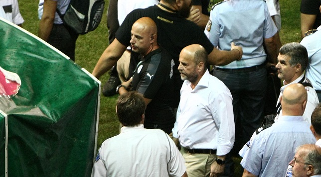 Όταν η κατάσταση ηρέμησε, αφού συνοδεύτηκε από έντονες αποδοκιμασίες προς όλους, ο πρόεδρος του Τριφυλλιού, Γιάννης Αλαφούζος, μαζί με τον αρχηγό της ομάδας, Κάρλος Ζέκα, αλλά και τους Τάκη Φύσσα και Λεωνίδα Βόκολο βγήκαν από τα αποδυτήρια για να μιλήσουν με τον κόσμο.