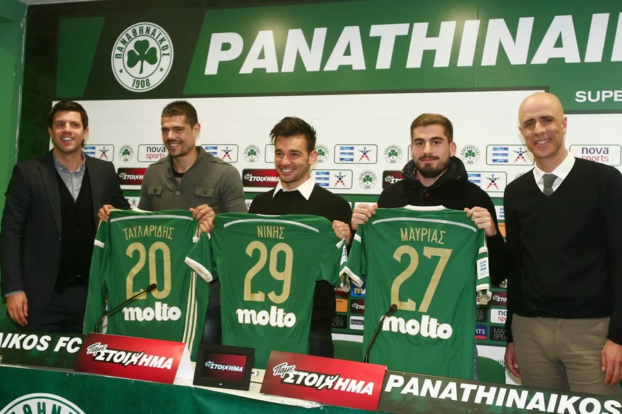 Αισιόδοξοι για το μέλλον του Παναθηναϊκού εμφανίστηκαν οι Σωτήρης Νίνης, Χάρης Μαυρίας και Στάθης Ταυλαρίδης κατά την επίσημη παρουσίασή τους από το «τριφύλλι». Eπίσης είναι αποφασισμένοι να βοηθήσουν για να γνωρίσει ο σύλλογος επιτυχίες τα επόμενα χρόνια.