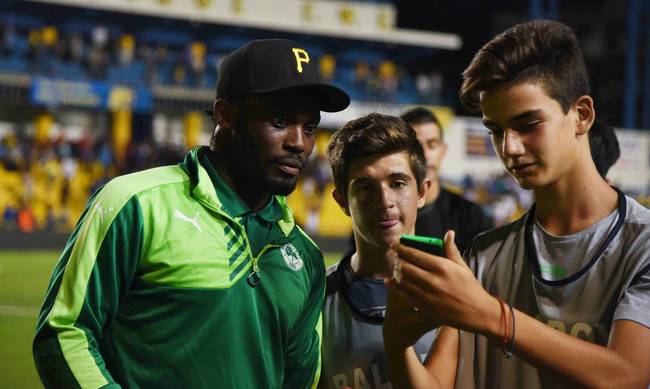 Το τέλος του αγώνα με τον Παναιτωλικό βρήκε τον Μάικλ Εσιέν, πάντα παρέα με τον Αμπντούλ Ατζαγκούν, ιδιαίτερα κεφάτο και χαμογελαστό μετά τη νίκη των «πράσινων» με 2-1.