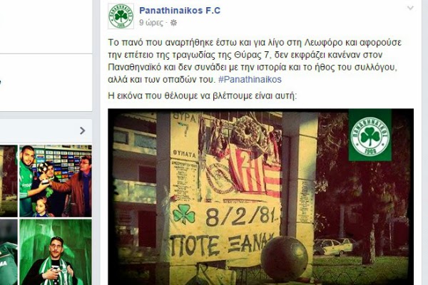 Από τον Παναθηναϊκό διευκρινίστηκε ότι η σελίδα στο facebook Panathinaikos F.C. δεν είναι η επίσημη της ΠΑΕ, δίχως να υπάρχει επίσημη τοποθέτηση για το περιστατικό με το πανό που σηκώθηκε, έστω και για λίγα δευτερόλεπτα στο ματς με τον Παναιτωλικό.