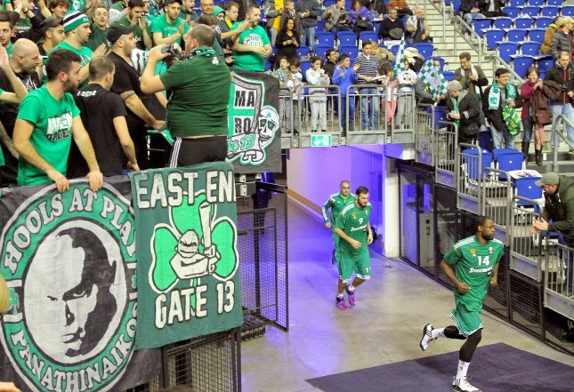 Γιατί ανάμεσα στον κόσμο που έχει γεμίσει την O2 Arena, υπάρχουν και περίπου 1.000 φίλοι των πρωταθλητών Ελλάδας που όχι μόνο δίνουν έντονο πράσινο χρώμα στις εξέδρες, αλλά και έξτρα κίνητρο για το πρώτο διπλό της ομάδας τους στο Top-16.