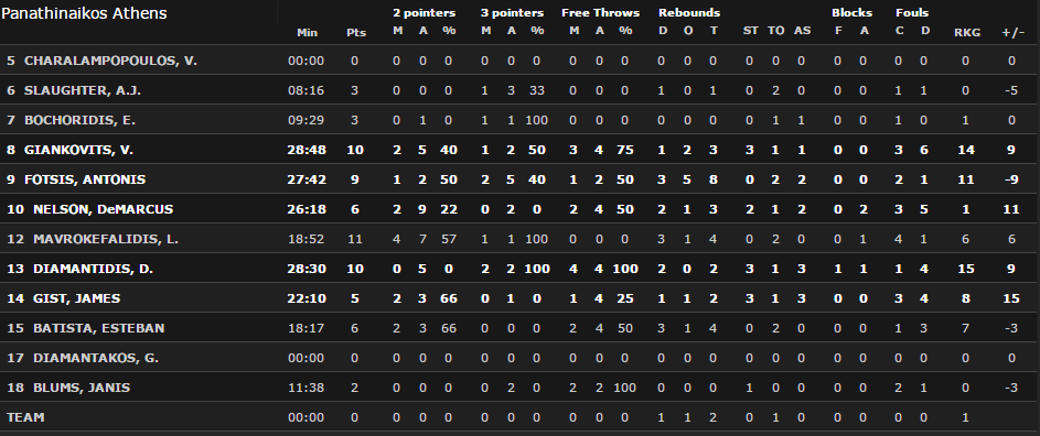 Τα στατιστικά του Παναθηναϊκού: