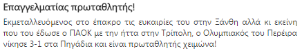 Τα πράγματα αρχίσουν και σοβαρεύουν, η ομάδα της Τρούμπας δεν μπορεί να πάρει με τα “μέσα” της το πρωτάθλημα και πλέον το παιχνίδι κάνουν άλλοι! Φυσικά τα… ανεξάρτητα ΜΜΕ!