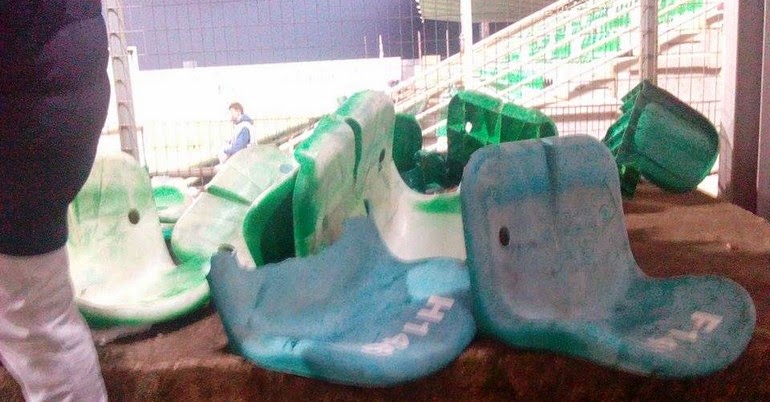 Ο… πολιτισμός του Πειραιά. Γυαλιά καρφιά τα έκαναν στις κερκίδες των Πηγαδιών της Ξάνθης οι oπαδοί του Ολυμπιακού.