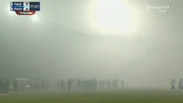 Το παιχνίδι του Παναθηναϊκού με τον ΠΑΣ στα Γιάννενα διεκόπη λόγω της ομίχλης, η οποία κάλυψε τα πάντα εντός του γηπέδου.