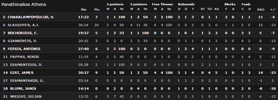 Αγωνιζόμενος στο μεγαλύτερο διάστημα του αγώνα χωρίς τον Δημήτρη Διαμαντίδη, ο έτσι και αλλιώς ελλιπής Παναθηναϊκός ηττήθηκε από τη Φενέρμπαχτσε στην Κωνσταντινούπολη με 84-62.