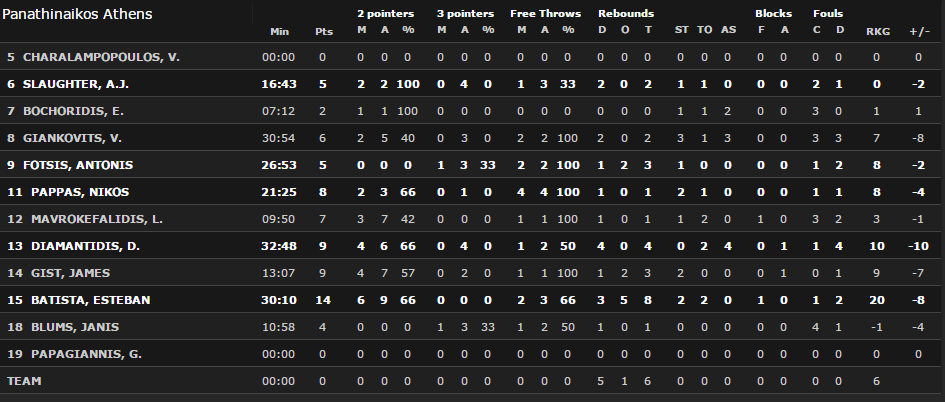 Τα στατιστικά των παικτών του Παναθηναϊκού: