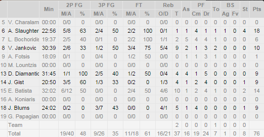Κορυφαίος ο Σλότερ για τους «πράσινους», ο οποίος τελείωσε το ματς με 18 πόντους, με τον Μπατίστα να κάνει νταμπλ-νταμπλ με 14 πόντους και 10 ριμπάουντ. Από την ομάδα των βορείων προαστίων ξεχώρισε ο Τσαλδάρης με 14 πόντους.