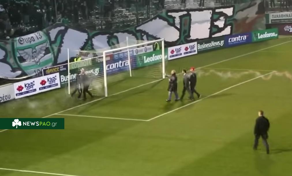 Συγκεκριμένος, εκείνος είχε πλησιάσει την εστία κοντά στη Θύρα 13 προκειμένου να ελέγξει τα δίχτυα και με μια χειρονομία προκάλεσε την «έκρηξη» των οπαδών του Τριφυλλιού.