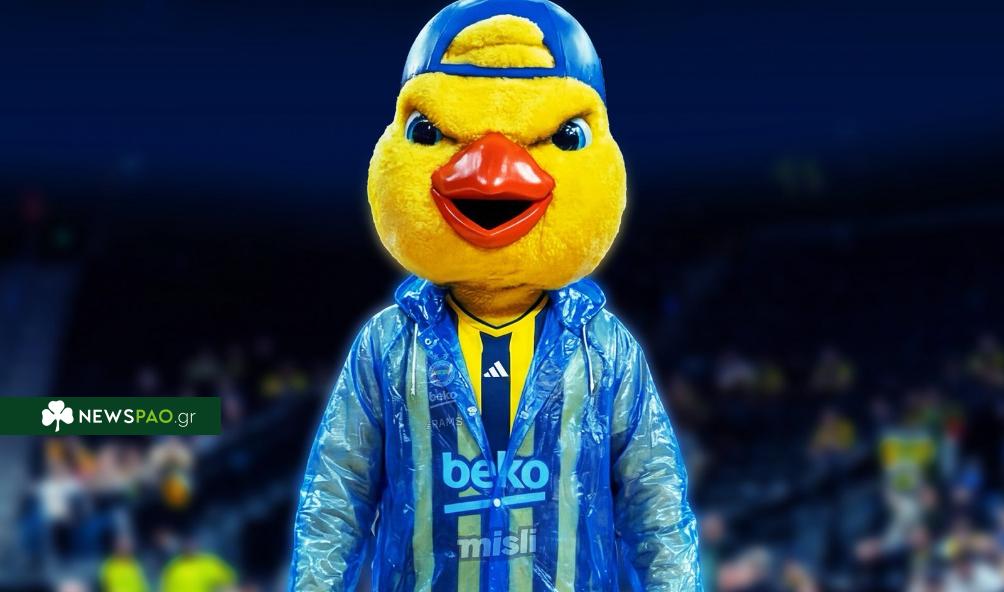 Η μασκότ της Φενερμπαχτσέ παρουσιάστηκε με… αδιάβροχο για τον αγώνα με τον Ολυμπιακό στο ΣΕΦ.