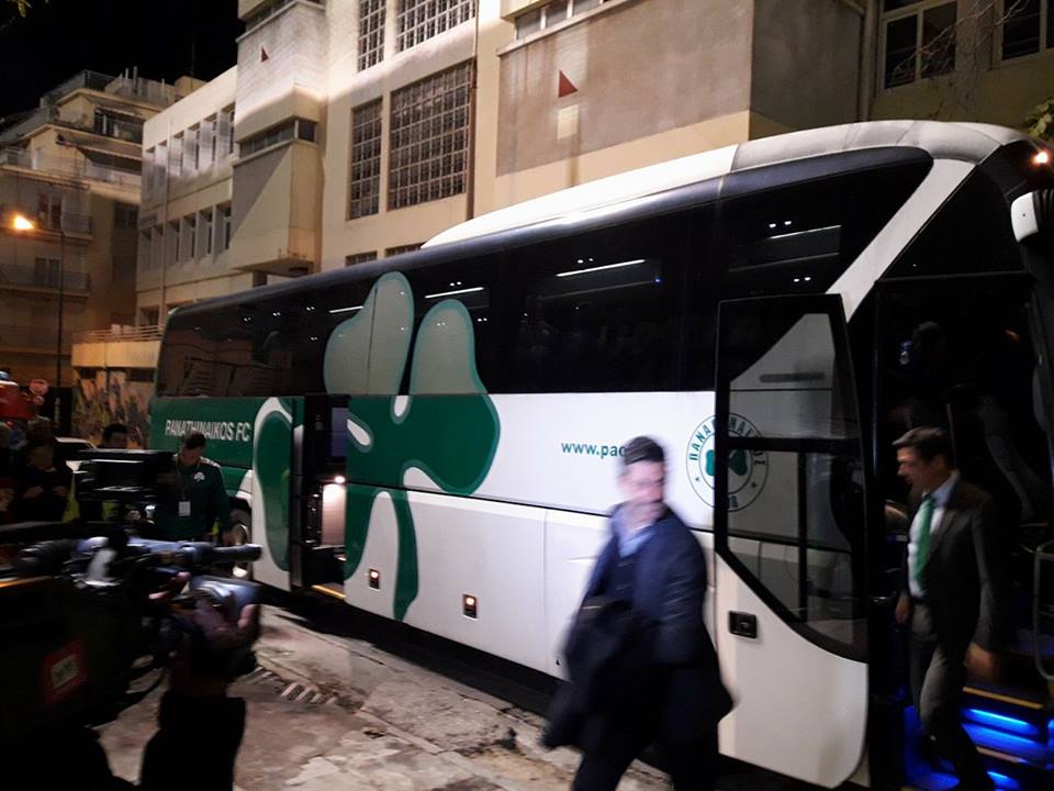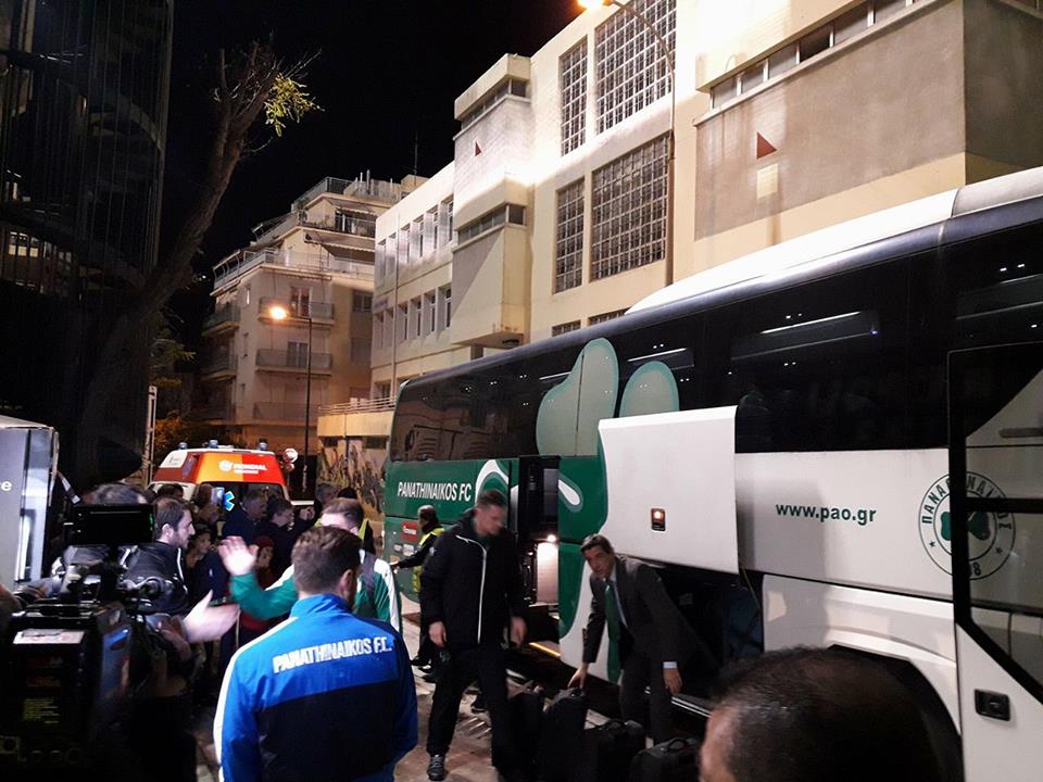 Η Αποστολή του Παναθηναϊκού έφτασε λίγο μετά τις 20:00 στο γήπεδο της Λεωφόρου, ενόψει του αγώνα με τη Θέλτα.