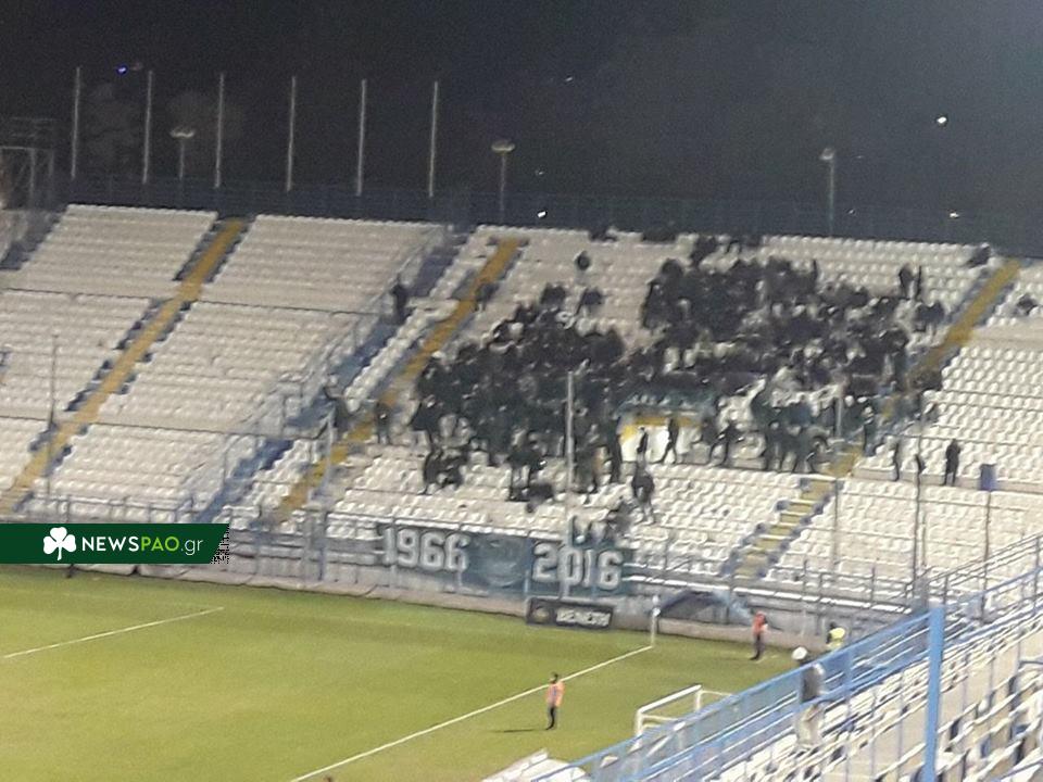 Οι περίπου 300 οπαδοί του Παναθηναϊκού που βρέθηκαν στη Ριζούπολη, αποχώρησαν μετά τη λήξη του πρώτου ημιχρόνου.