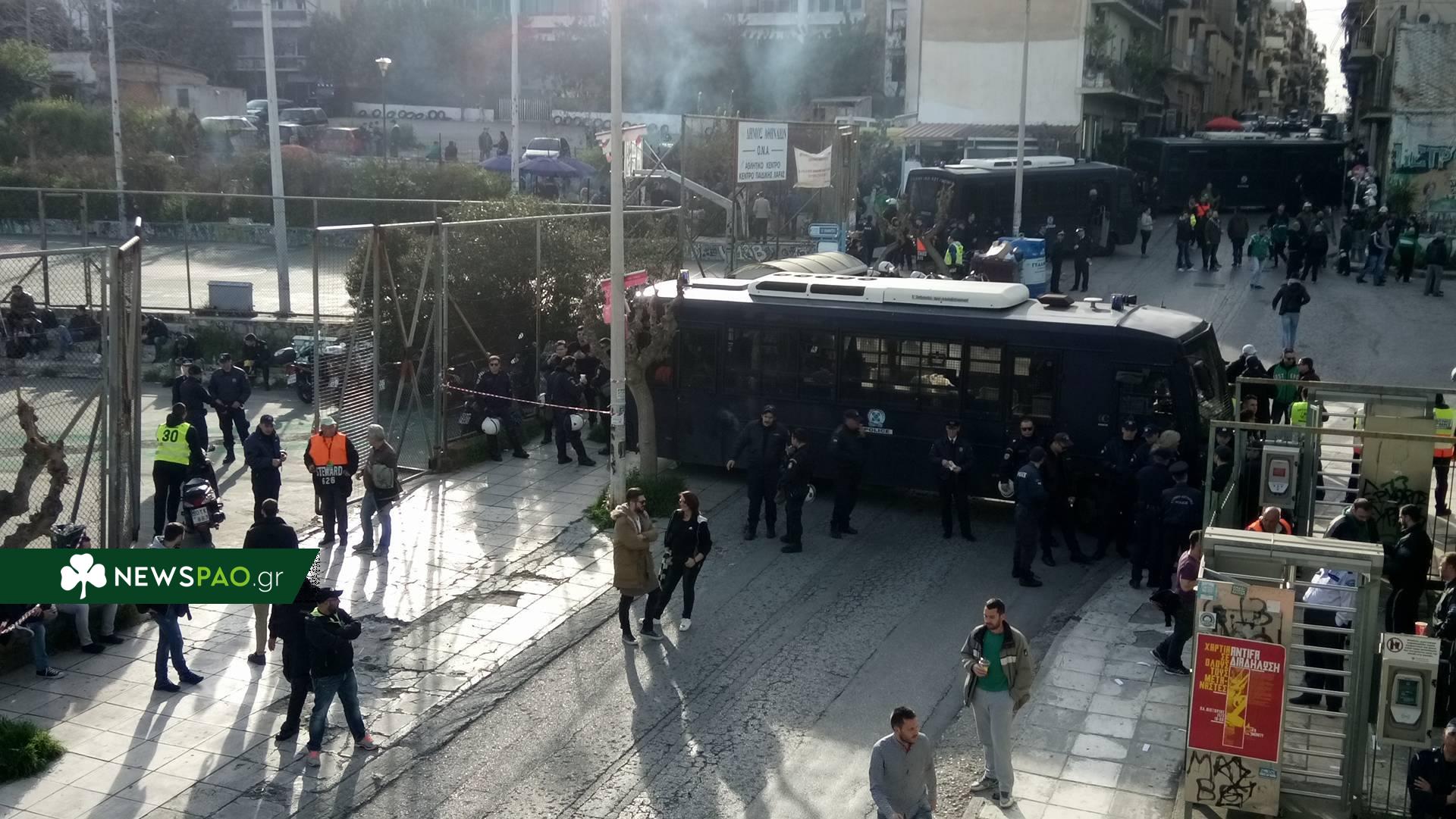 Λίγες ώρες έμειναν για την έναρξη του ντέρμπι, με τους φίλους του τριφυλλιού να καταφθάνουν από νωρίς στο γήπεδο.