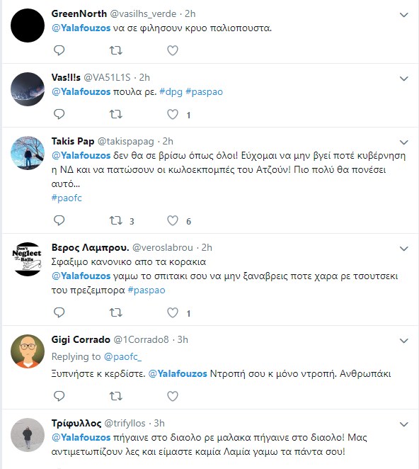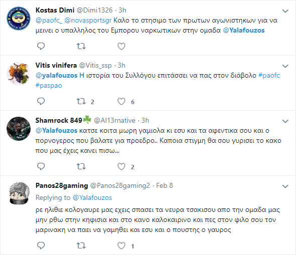 Μετά το τέλος του αγώνα οι φίλοι των πρασίνων έκαναν «ντου» στον λογαριασμό του Γιάννη Αλαφούζου, καθώς κανείς δεν παίρνει θέση για τα όσα γίνονται σε κάθε αγώνα του τριφυλλιού.