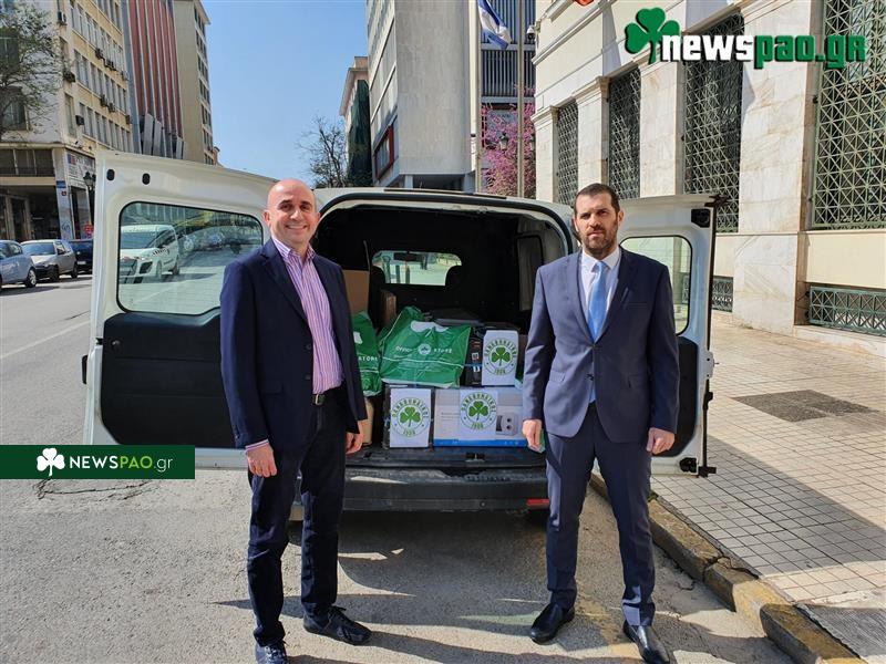 Ο αντιπρόεδρος της ΠΑΕ, κ. Λεωνίδας Μπουτσικάρης και η υπεύθυνη Εταιρικής Κοινωνικής Ευθύνης, κα. Κωνσταντίνα Σκορδά παρέδωσαν στον πρόεδρο του Κέντρου Υποδοχής Αλληλεγγύης του Δήμου Αθηναίων, κ. Γρηγόρη Λέων, τα πρώτα απαραίτητα ηλεκτρικά είδη και δώρα για τα μικρά παιδιά του Ξενώνα.