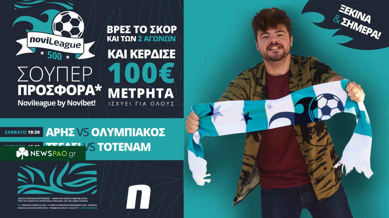 Συγκεκριμένα, οι διαγωνιζόμενοι καλούνται μέσω της Novileague να μαντέψουν σωστά τα ακριβή σκορ στα παιχνίδια: Άρης – Ολυμπιακός (28/11, 19:30) και Τσέλσι – Τότεναμ (18:30). Όσοι τα καταφέρουν θα εισπράξουν από 100€ σε μετρητά!