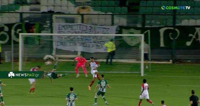 Από σέντρα του Βαγιαννίδη ο Καμπετσής επεδίωξε να εκτελέσει με ψαλιδάκι, όμως, δεν βρήκε για λίγο την μπάλα.