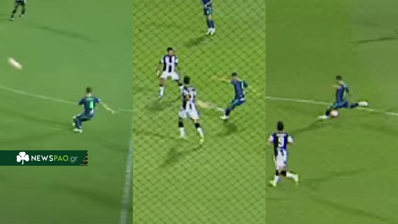 Ο Πέρεθ το δοκίμασε στο ίδιο ματς με τον ΠΑΟΚ, μόλις 1 λεπτό νωρίτερα με τη μπάλα να σκάει χιλιοστά μπροστά στον Αϊτόρ και να τη μαζεύει τελικά με ευκολία ο γκολκίπερ του ΠΑΟΚ. Όμως, ο «εγκέφαλος» της ομάδας είχε ζωγραφίσει στο μυαλό του το γκολ της ισοφάρισης, επέμεινε και το επιχείρησε ξανά με την πρώτη ευκαιρία, ύστερα από ένα κλέψιμο του Κουρμπέλη κοντά στην «πράσινη» περιοχή του Μπρινιόλι.