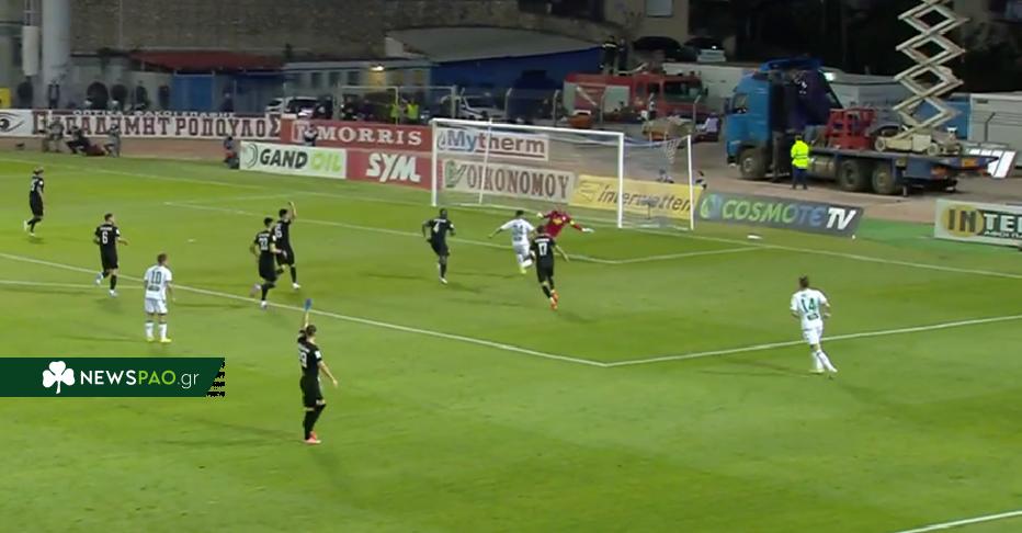 Από ωραίο κράτημα της μπάλας του Ιωαννίδη άνοιξε η άμυνα της Λαμίας, ο Μπερνάρ με κάθετη βρήκε τον Παλάσιος και εκείνος με υποδειγματικό «σκάψιμο» άνοιξε το σκορ για τον Παναθηναϊκό στο 23ο λεπτό.