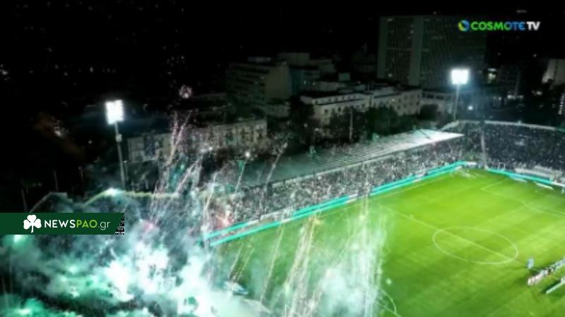 Μια απίθανη ατμόσφαιρα δημιούργησαν στο πέταλο της Θύρας 13 οι οπαδοί του Παναθηναϊκού κατά την είσοδο των ομάδων στον αγωνιστικό χώρο.