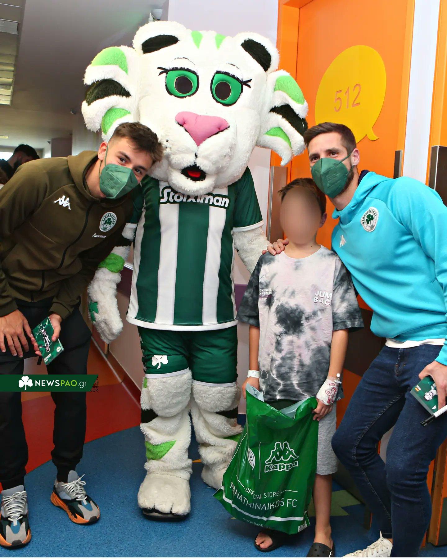 Κοντά στους μικρούς ασθενείς της Παιδιατρικής Κλινικής του "Μητέρα" βρέθηκε σήμερα η ΠΑΕ Παναθηναϊκός!Οι ποδοσφαιριστές του Τριφυλλιού, Rubèn Perez, Γιούρι Λοντίγκιν, Γιώργος Βαγιαννίδης μαζί με τη μασκότ της ομάδας, τον Πανάθα, μοίρασαν δώρα και χαρά στα παιδιά. #Panathinaikos pic.twitter.com/qGofm19rdh