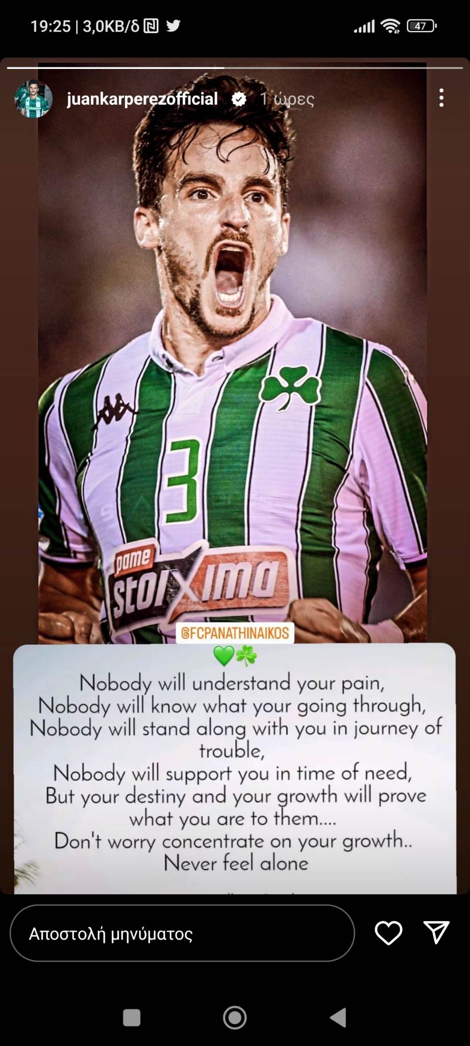 Ο Χουάνκαρ δημοσίευσε ένα αινιγματικό ποστ στα social media μία μέρα μετά την αναμέτρηση με τον ΠΑΟΚ.