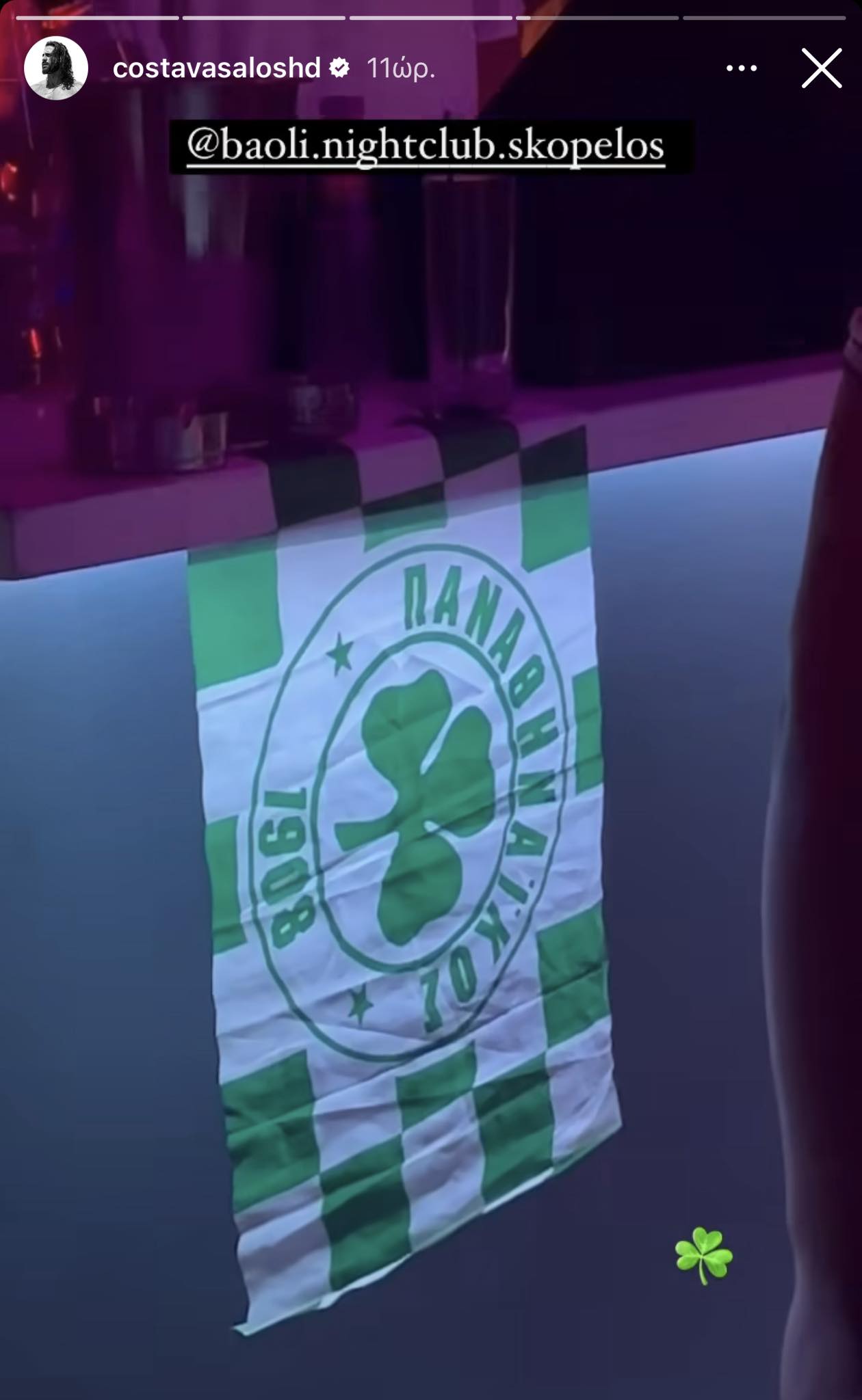 Σε νυχτερινό μαγαζί που βρέθηκε ο Βασάλος «ανέβασε» μια σημαία του Παναθηναϊκού, ενδεικτικό και του ενθουσιασμού που επικρατεί στις τάξεις των φιλάθλων.