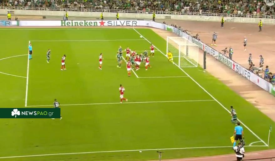 Πλησίασε στο γκολ ο Παναθηναϊκός, ο Ματέους έκανε μια εντυπωσιακή απόκρουση σε κοντινή κεφαλιά του Βαγιαννίδη.