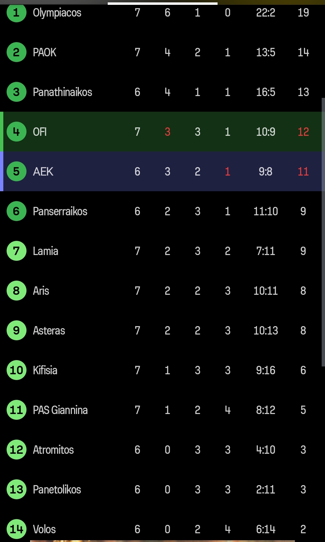 Υπενθυμίζεται ότι τόσο ο Παναθηναϊκός όσο και η ΑΕΚ έχουν παιχνίδι λιγότερο.