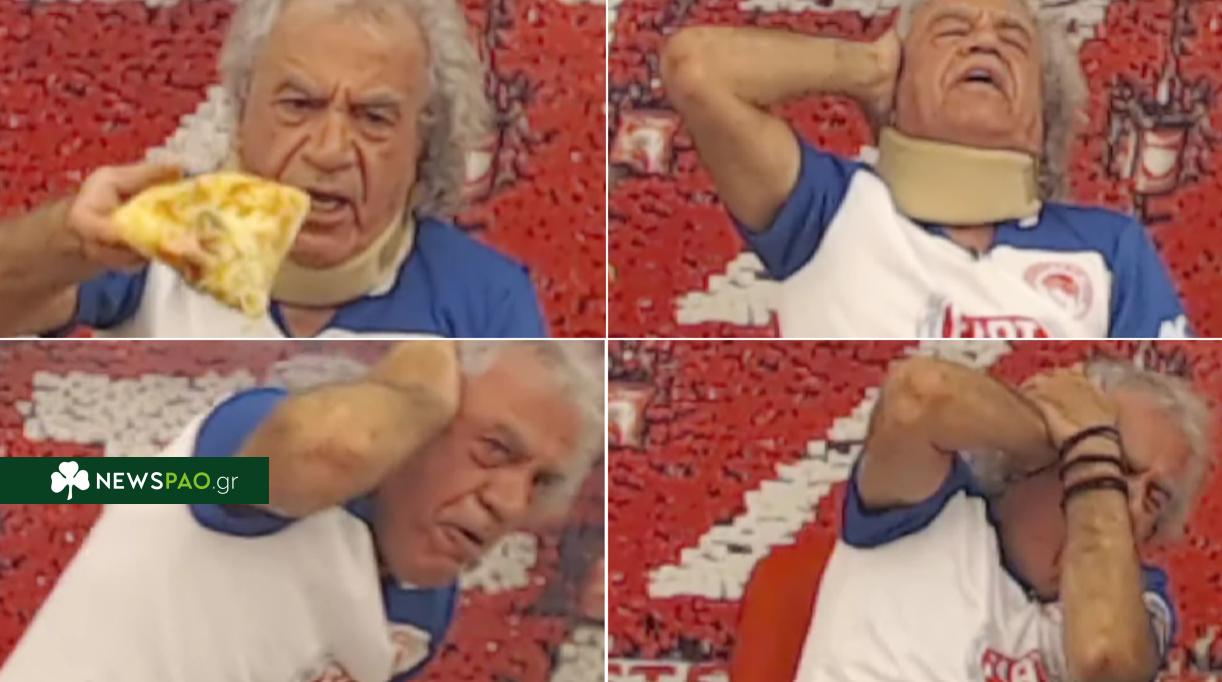 Ο γνωστός τηλεοπαδός του Ολυμπιακού…. κουφάθηκε στην εκπομπή του, φόρεσε κολάρο και έφαγε… ένα κομμάτι πίτσας!