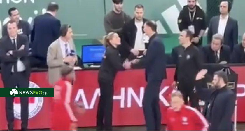 Οι ερυθρόλευκοι και ο Γιώργος Μπαρτζώκας γνώρισαν έντονες αποδοκιμασίες στο ΟΑΚΑ με τον ερυθρόλευκο τεχνικό να χαιρετάει τη Βάσω Τσαρούχα πριν καθίσει στον πάγκο της ομάδας.