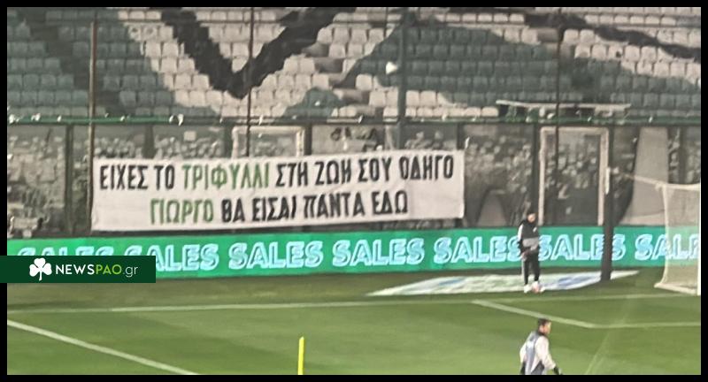 «Είχες το τριφύλλι στη ζωή σου οδηγό, Γιώργο θα είσαι πάντα εδώ», γράφει χαρακτηριστικά το πανό.