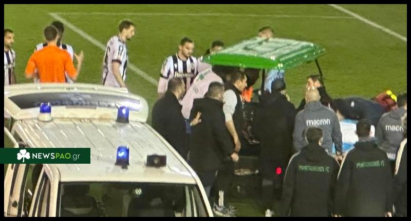 Ο ποδοσφαιριστής του ΠΑΟΚ τραυματίστηκε πολύ σοβαρά, τοποθετήθηκε κολάρο στο κεφάλι του και αποχώρησε με ασθενοφόρο από το γήπεδο, προκειμένου να μεταφερθεί στο νοσοκομείο.