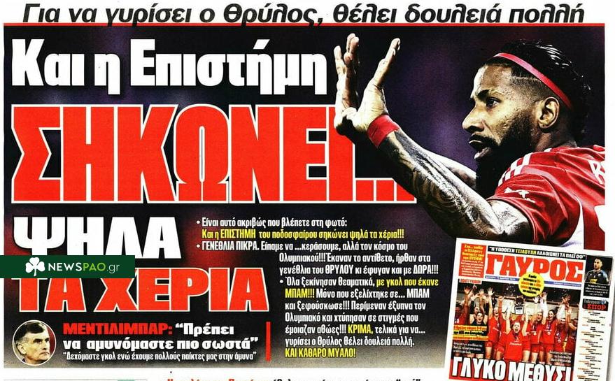 Η εφημερίδα «Πρωταθλητής» σχολιάζει την ήττα του Ολυμπιακού από τον Παναθηναϊκού στο χθεσινό ντέρμπι.