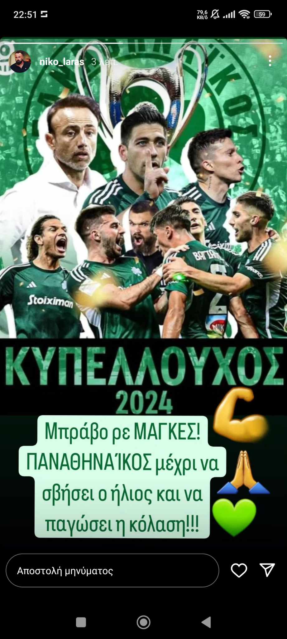 Ο πρώην υπεύθυνος επικοινωνίας του Τριφυλλιού προχώρησε σε ανάρτηση στο Instagram στιγμές μετά την κατάκτηση του τροπαίου.