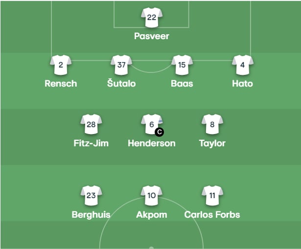 «Πάσφεερ, Ρένσχ, Σούταλο, Μπάας, Χάτο, Φιτζ-Τζιμ, Χέντερσον, Τέιλορ, Μπέργκχαους, Φορμπς, Άκπομ»