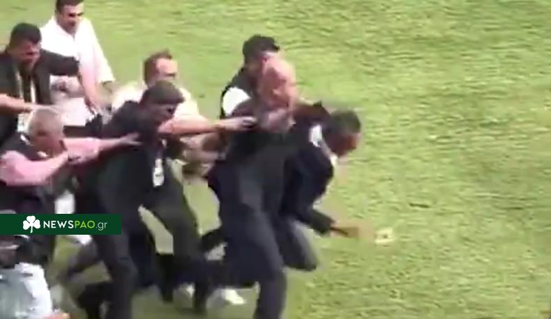 Άνδρας άγνωστης ταυτότητας έσπρωξε τον πρόεδρο της Φενερμπαχτσέ, Άλι Κοτς, ο οποίος έπεσε στο γρασίδι την ώρα που από την κερκίδα εκσφενδονίζονταν δεκάδες αντικείμενα.