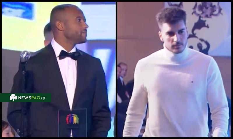 Ο επιθετικός του Παναθηναϊκού έβγαλε ένα σύντομο λόγο και αναφέρθηκε και στη σύντροφό του, Ελένη Βουλγαράκη: