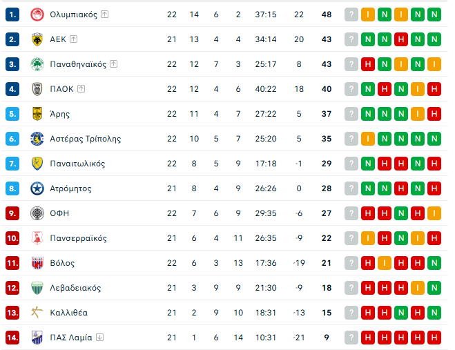 Δείτε παρακάτω την βαθμολογία μετά το Άρης-Παναθηναϊκός: