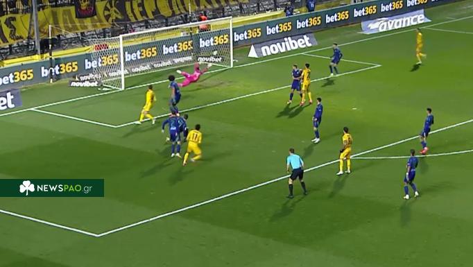 Ο Βαγιαννίδης δεν κατάφερε να σταματήσει τον παίκτη του Άρη, ο οποίος έστειλε στη συνέχεια τη μπάλα στο βάθος της εστίας του Λοντίγκιν.