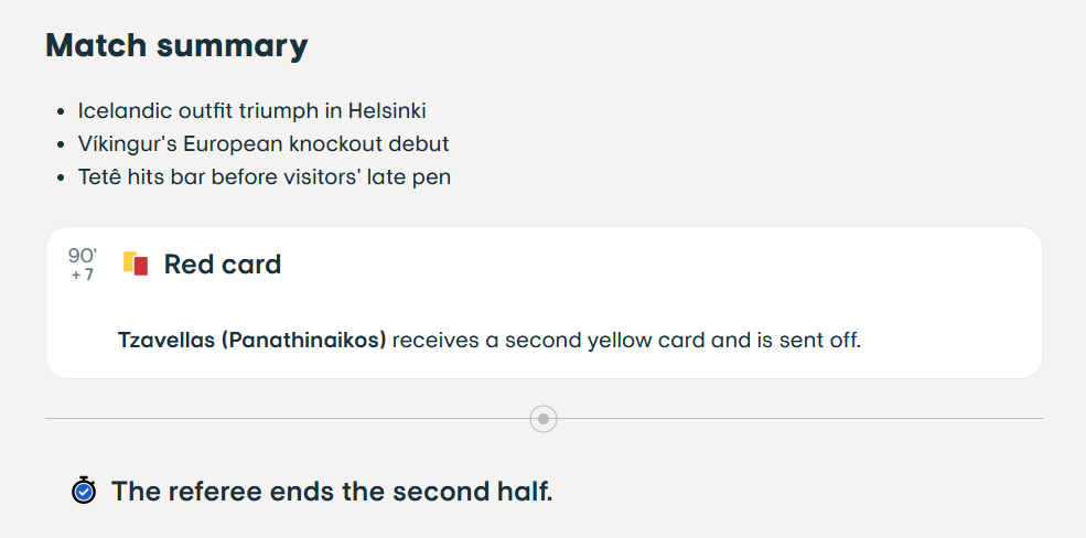 Σύμφωνα με την UEFA, η δεύτερη αυτή κάρτα καταλογίστηκε μετά τη λήξη της αναμέτρησης.