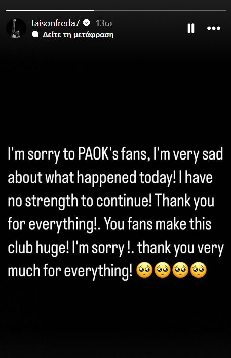 Το, πλέον, ανησυχητικό είναι το «στόρι» που ανέβασε μετά τον αγώνα με τη Στεάουα Βουκουρεστίου που έκανε λόγο πως «δεν μπορεί να συνεχίσει άλλο» με δακρυσμένα emojis.