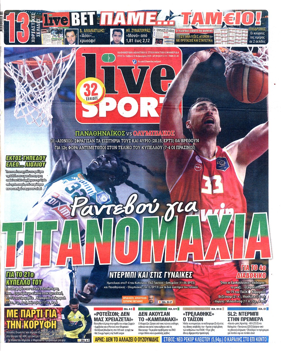 Δείτε τα πρωτοσέλιδα των αθλητικών εφημερίδων σήμερα Σάββατο 15 Φεβρουαρίου 2025.